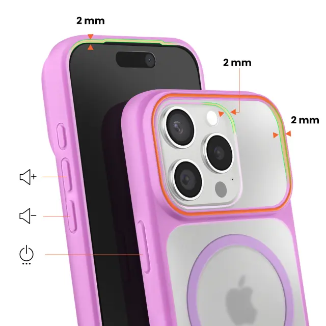 Ovitek MagSafe za iPhone 15 Pro, zadnja stran z dimnim efektom z ojačanim silikonskim okvirjem, Vijolična