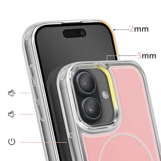 Ohišje MagSafe za iPhone iPhone 16 Plus združuje togost in prožnost, da učinkovito absorbira udarce. Magnetni obroč MagSafe za združljivost s hitrim brezžičnim polnjenjem. Mat roza, trda hrbtna stran, ki preprečuje odtisi prstnih odtisov in ohranja najboljši videz dizajna. Ojačani vogali z diskretnimi zračnimi blazinami za optimalno zaščito pred udarci brez dodatne teže.