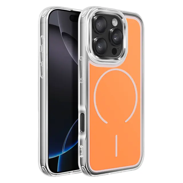 Ohišje MagSafe za iPhone iPhone 16 Pro Max združuje togost in prožnost, da učinkovito absorbira udarce. Magnetni obroč MagSafe za združljivost s hitrim brezžičnim polnjenjem. Mat oranžna, trda hrbtna stran, ki ne pušča prstnih odtisov in ohranja najboljši videz. Ojačani vogali z diskretnimi zračnimi blazinami za optimalno zaščito pred udarci brez dodatne teže.
