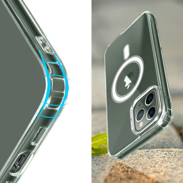 Ovitek MagSafe za iPhone 11 Pro z magnetnim krogom, združljiv z vsemi dodatki Magsafe. Togo hrbtišce in prilagodljiva oblika za ucinkovito zašcito vašega pametnega telefona. Prozoren zakljucek, da je oblika mobilnega telefona vidna.