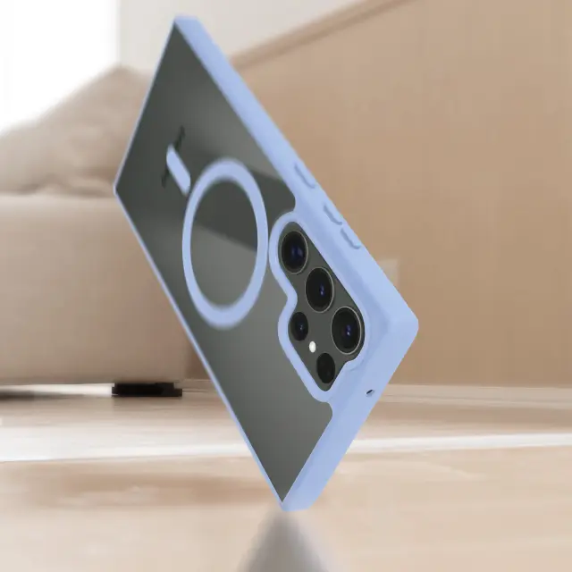 Zaščitna torbica posebej oblikovana za Samsung Galaxy S23 Ultra. Vgrajen obroč MagSafe, ki omogoča združljivost telefona z dodatki MagSafe: denarnico, polnilnikom itd. Dizajn iz dveh materialov s hrbtno stranjo iz trdega polikarbonata in silikonskim okvirjem. Odporna zaščita pred udarci in praskami za ohranitev telefona.