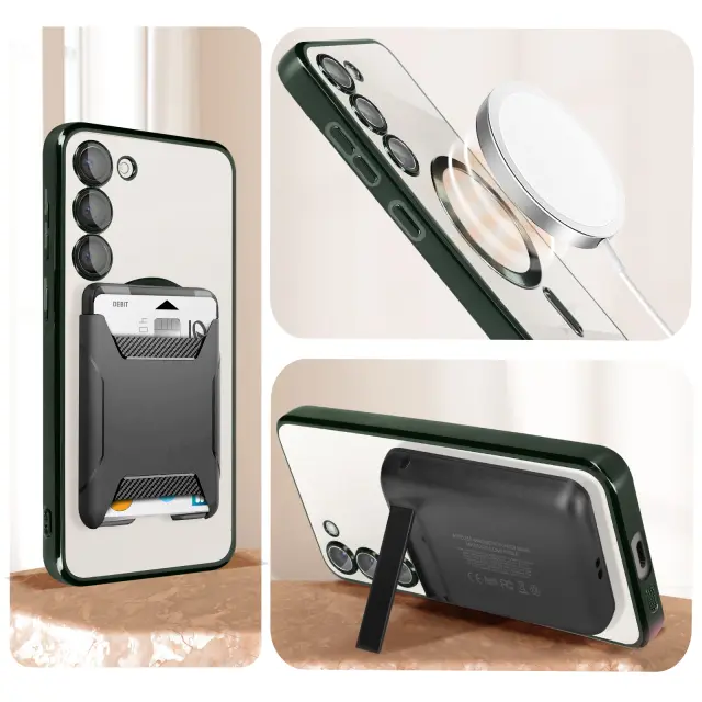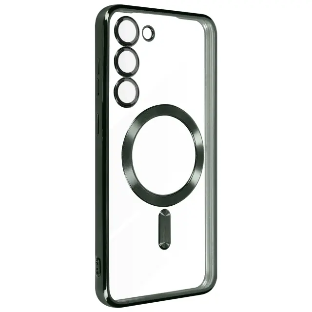 Ovitek MagSafe za Samsung S23, zašcita kamere, prozorna hrbtna stran Zelen obris