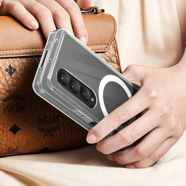 Opremite svoj Samsung Galaxy Z Fold 4 s to torbico serije Crystal Mag, da bo združljiva s tehnologijo MagSafe. Omogoca magnetno brezžicno polnjenje vašega pametnega telefona. Zaradi prozornega zakljucka je dizajn mobilnega telefona viden.