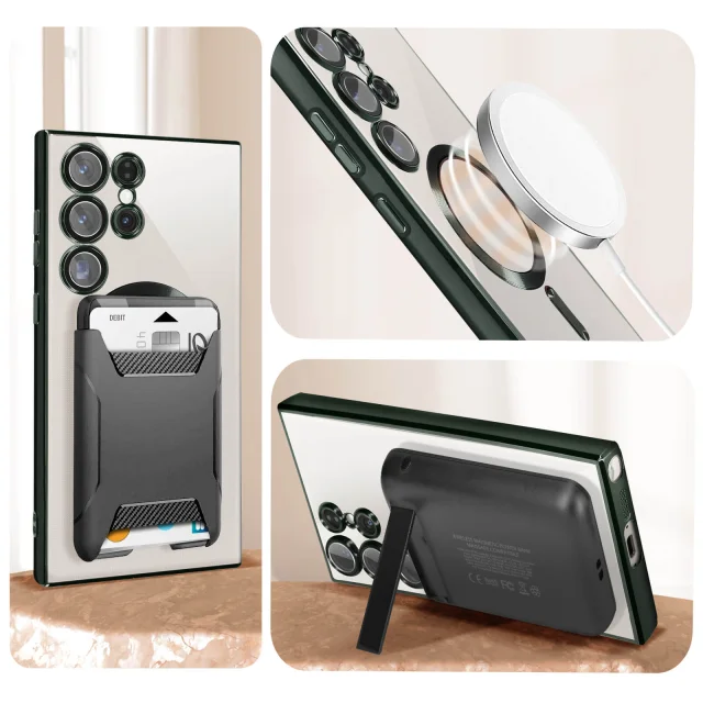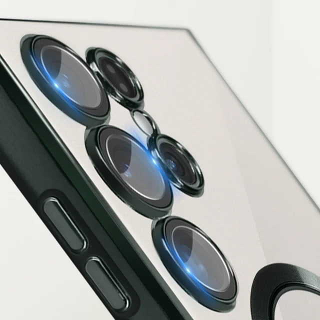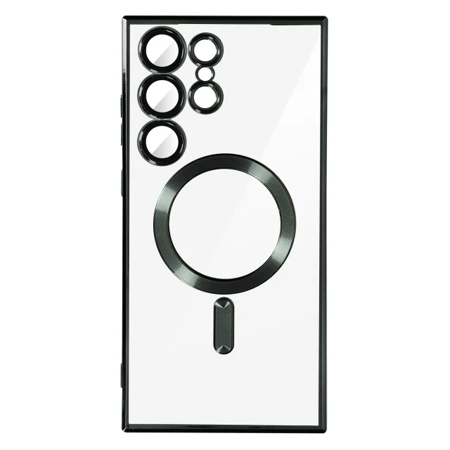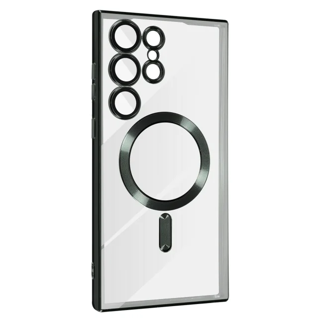 Ovitek MagSafe za Samsung S23 Ultra, zašcita kamere, prozorna hrbtna stran Zelen obris