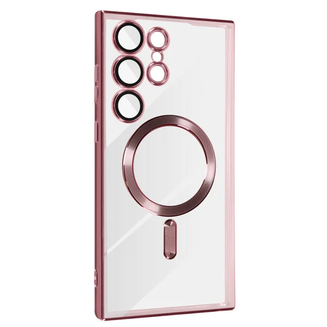 Ovitek MagSafe za Samsung S23 Ultra, zašcita za kamero, prozorna hrbtna stran roza