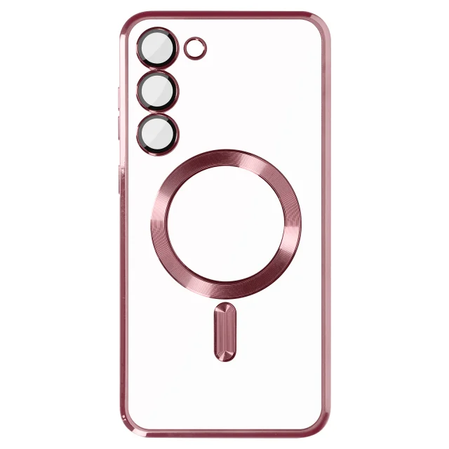 Ovitek MagSafe za Samsung S23, zašcita za kamero, prosojen zadnji obris roza