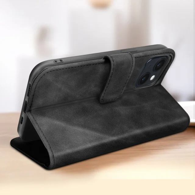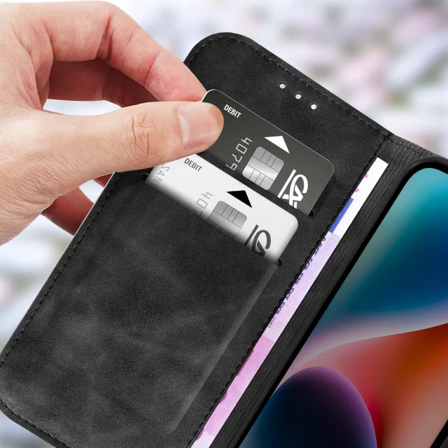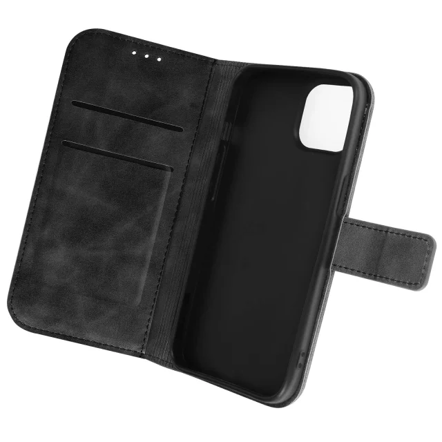 Ovitek mehak na dotik za iPhone 14, preklopna denarnica - crna
