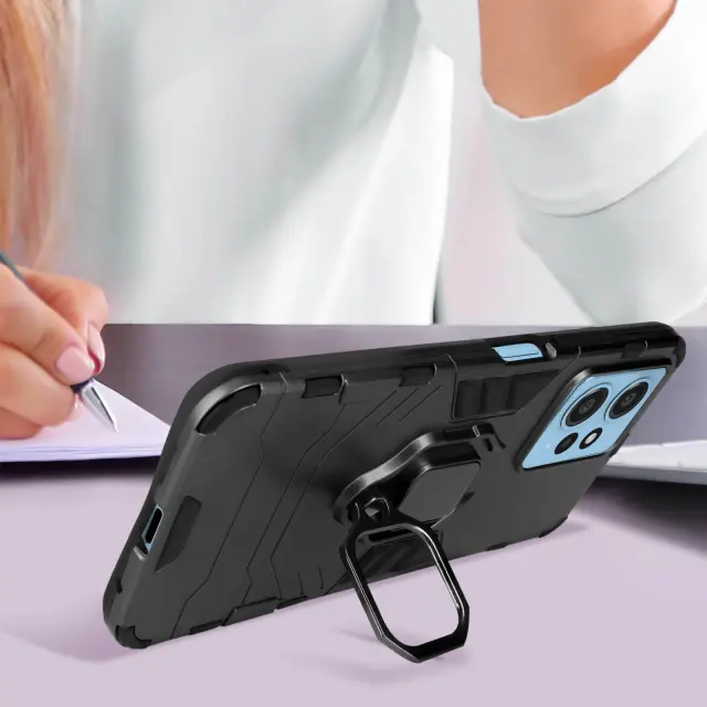 Izjemno vzdržljiv ovitek s posebej oblikovanim obročkom za vaš Xiaomi Redmi Note 12 5G in 4G. 360° vrtljiv obroč, ki služi kot stojalo za ležečo uporabo vašega pametnega telefona. Omogoča bolj praktičen in varen oprijem z eno roko. Vgrajen kovinski sistem, združljiv z magnetnim nosilcem (ni vključen).