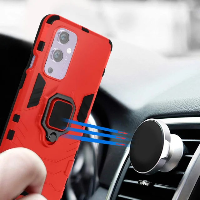 Ovitek OnePlus 9, odporen na udarce, z držalom za prstan, zbirka prstanov - rdec