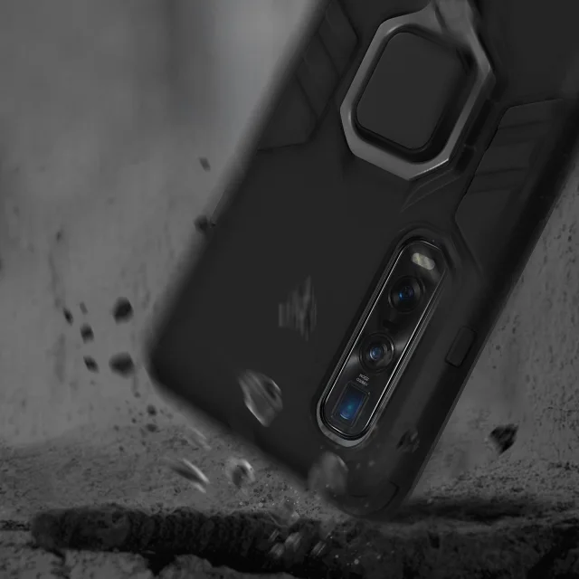 Ovitek Oppo Find X2 Pro, odporen na udarce, s podpornim obrocem, zbirka stojala - crna