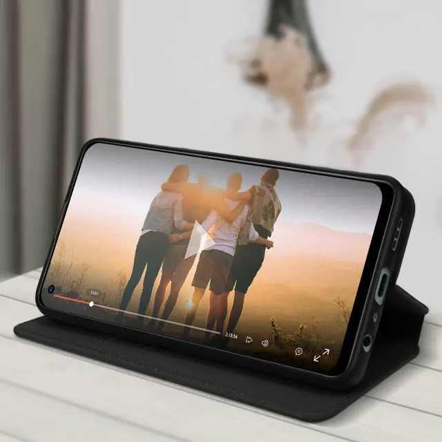 Ovitek Oppo Reno 8 Lite 5G z magnetnim preklopom, držalom za kartico in video držalom - crn