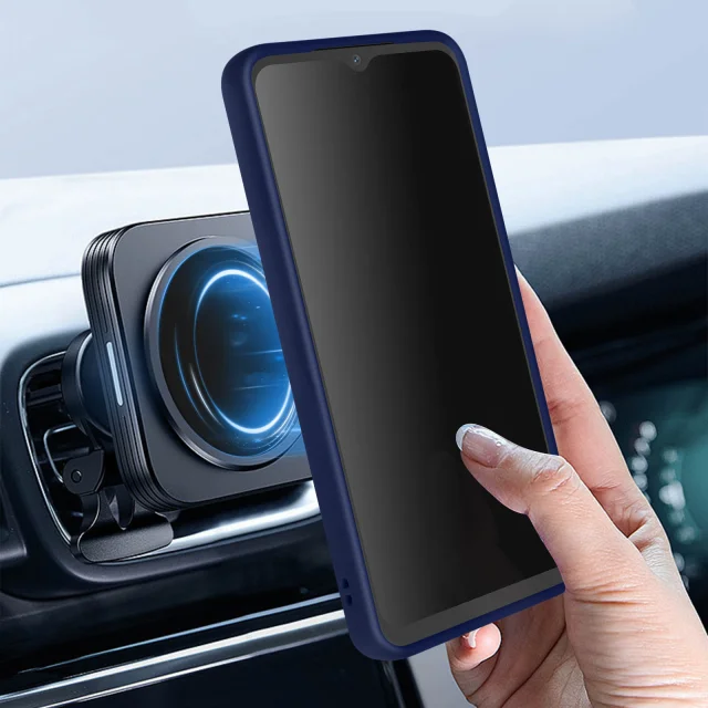 Ovitek proti prstnim odtisom za Samsung Galaxy A14, kovinski nosilni obroc - moder