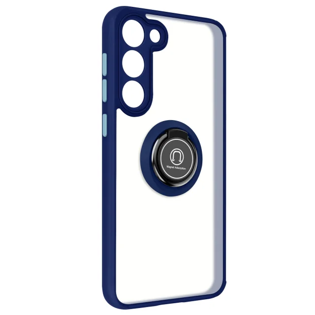Ovitek proti prstnim odtisom za Samsung Galaxy S23, kovinski podporni obroc - moder