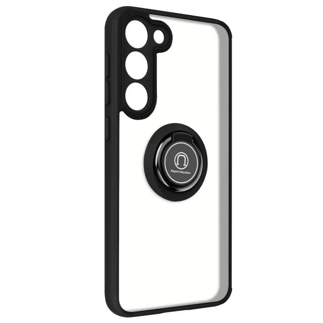 Ovitek proti prstnim odtisom za Samsung Galaxy S23 Plus, kovinski nosilni obroc - crn