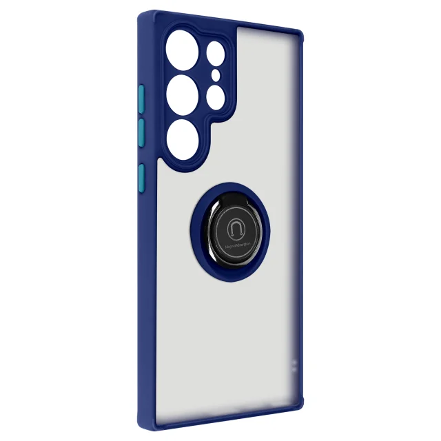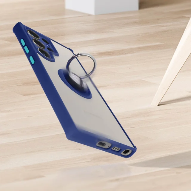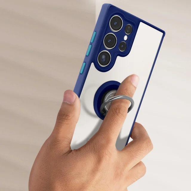 Ovitek proti prstnim odtisom za Samsung Galaxy S23 Ultra, kovinski podporni obroc - moder
