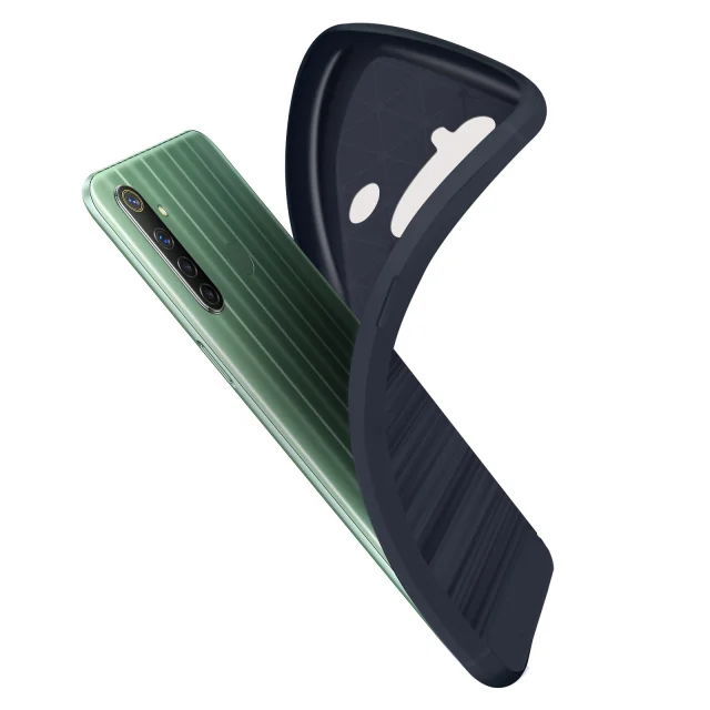 Ovitek Realme 6i iz ogljika in brušenega silikona z ojacanimi vogali - polnocno modra