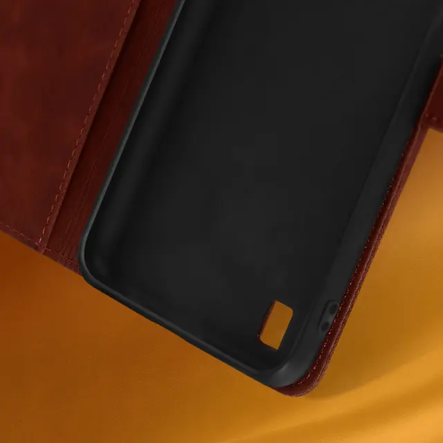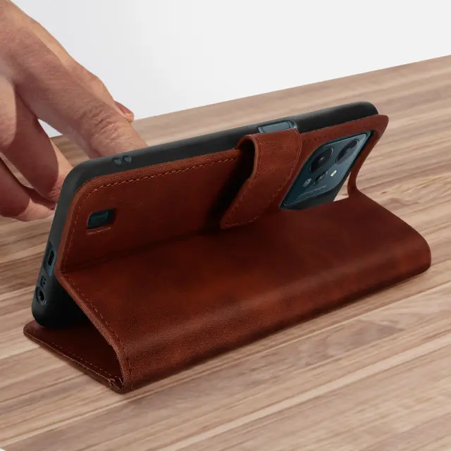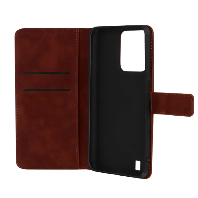 Ovitek Realme C31 s preklopom za denarnico, podporo za video, mat rjava z ucinkom mehkega dotika