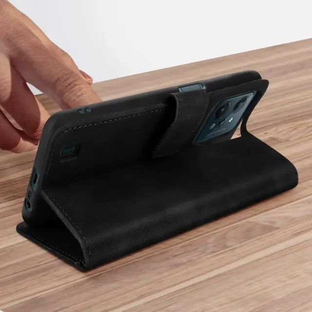 Ovitek Realme C31 s preklopom za denarnico, podporo za video, mat crna z mehkim dotikom