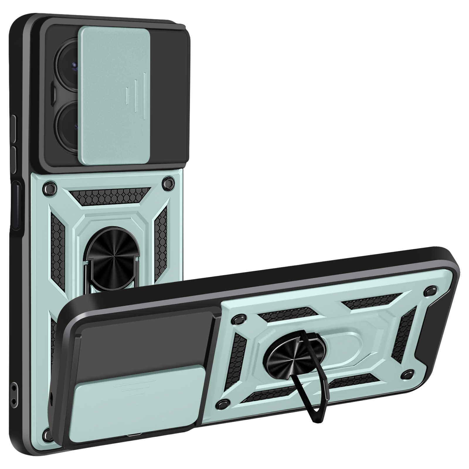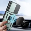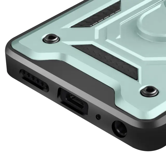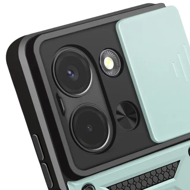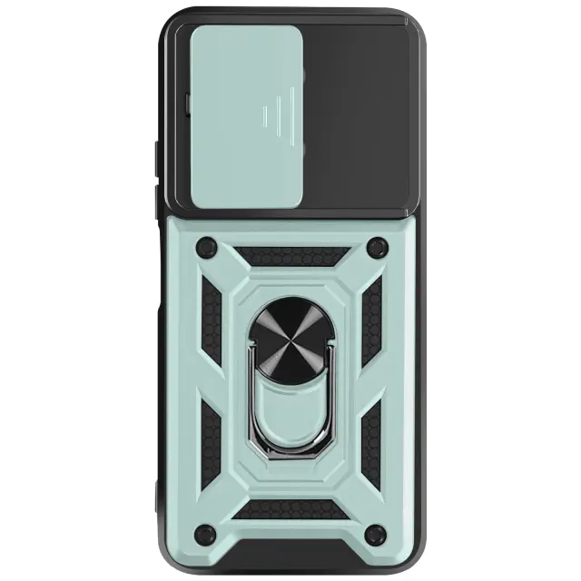 Zaščitite fotoaparat z drsnim pokrovom, ki preprečuje praske in zagotavlja zasebnost. Izkoristite vgrajeno podporo zaradi kovinskega obroča, ki se spremeni v praktično stojalo. Povečajte vzdržljivost z dvojnim materialom, ki združuje mehak silikon in tog polikarbonat.. Zagotovite vojaško odpornost z ojačenimi vogali, skladnimi z MIL-STD 810G.