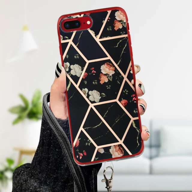 Ovitek s kablom za iPhone 8 Plus in 7 Plus, geometrijski vzorec - crn