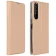 Ovitek s satenastim ucinkom za Sony Xperia 1 II z držalom za kartico in videoposnetkom - roza zlato