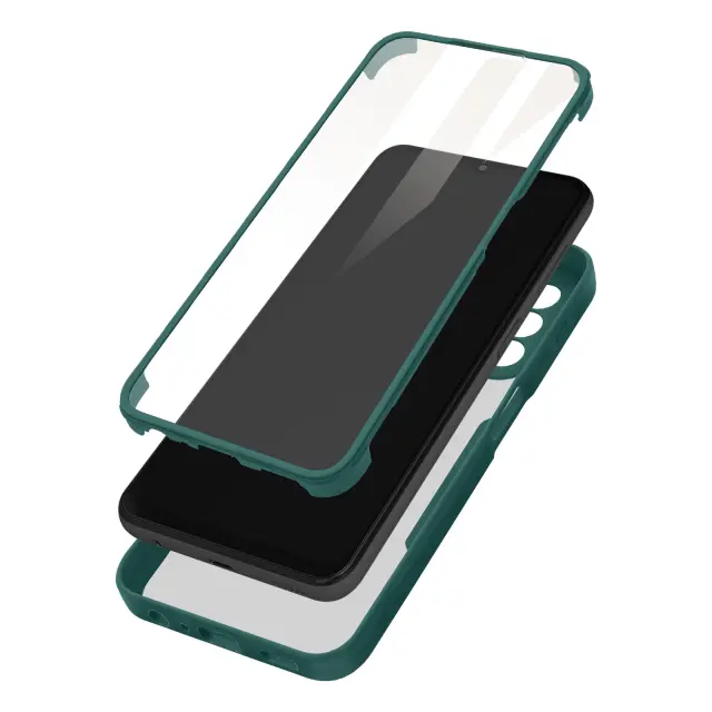 Celoten ovitek z Samsung Galaxy A13 4G. Sestavljen iz robustnega hrbtnega dela iz pleksi stekla in sprednjega dela iz polimera. Ojacani vogali. Dostopne funkcije in lastnosti zaslona v celoti ohranjene. Preoblikovani stranski gumbi.