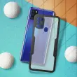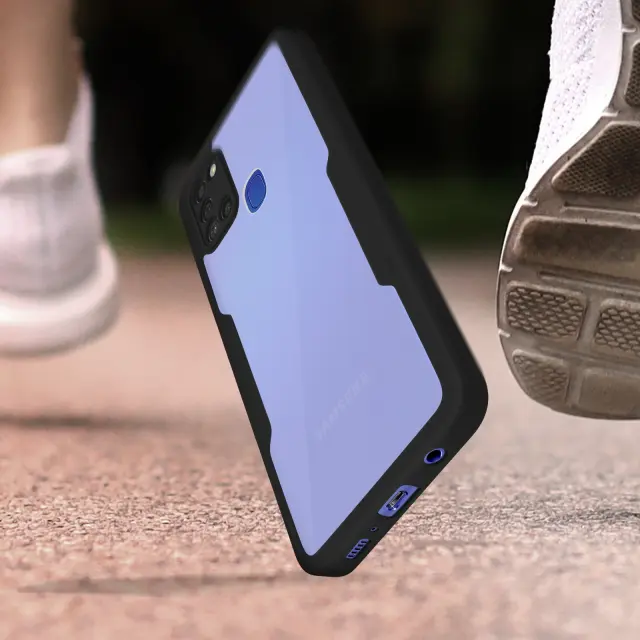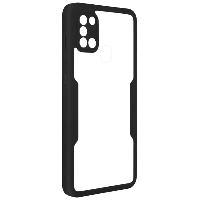 Ovitek odporen na udarce za Samsung Galaxy A21S s prozorno črno silikonsko konturo. Robustna hrbtna stran iz pleksi stekla poskrbi, da je zadnja stran vašega mobilnega telefona varna in brez ovir. Sprednji del iz polimera prekriva zaslon za zaščito. Vaš zaslon ohrani vse svoje lastnosti otipa in barvne reprodukcije.