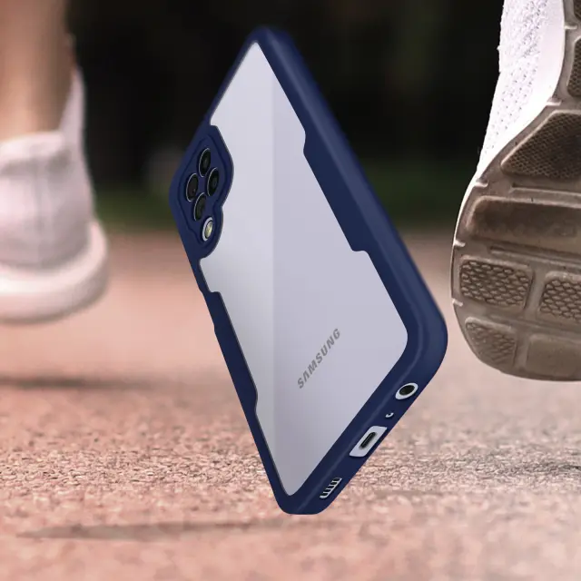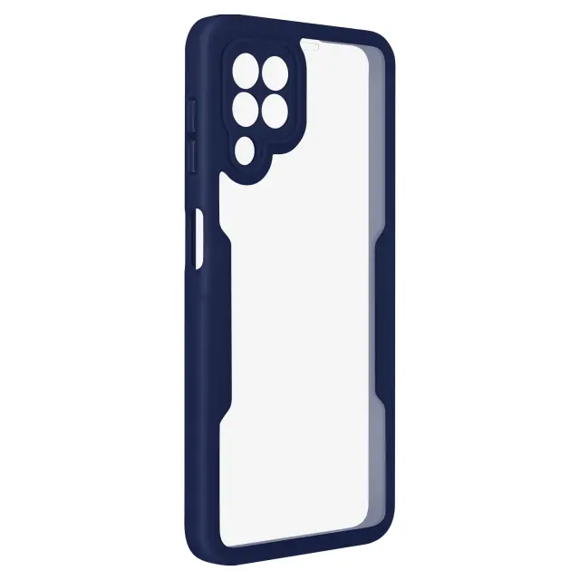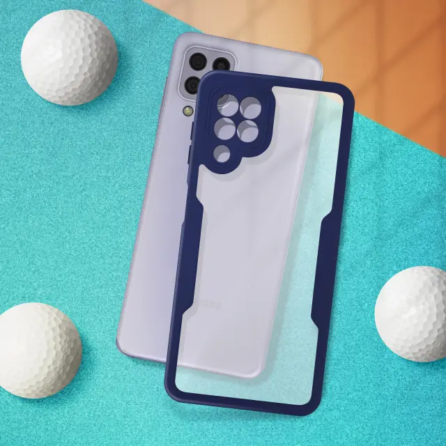 Ovitek za Samsung Galaxy A22 4G, odporen na udarce, s prozorno modro silikonsko konturo. Robustna hrbtna stran iz pleksi stekla poskrbi, da je zadnja stran vašega mobilnega telefona varna in brez ovir. Sprednji del iz polimera prekriva zaslon za zaščito. Vaš zaslon ohrani vse svoje lastnosti otipa in barvne reprodukcije.