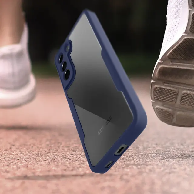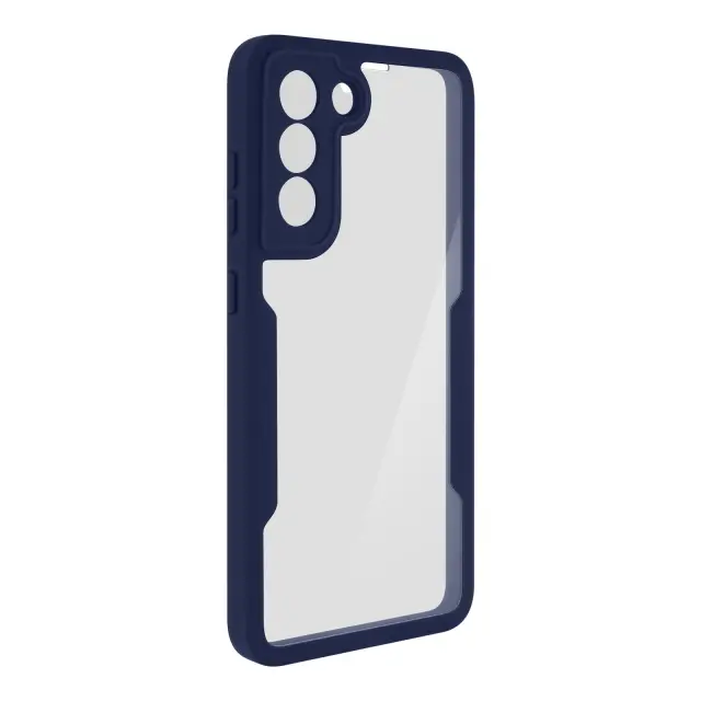 Ovitek odporen na udarce za Samsung Galaxy S21 FE s prozorno temno modro silikonsko konturo. Robustna hrbtna stran iz pleksi stekla poskrbi, da je zadnja stran vašega mobilnega telefona varna in brez ovir. Sprednji del iz polimera prekriva zaslon za zaščito. Vaš zaslon ohrani vse svoje lastnosti otipa in barvne reprodukcije.
