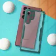 Celoten ovitek z Samsung Galaxy S22 Ultra. Sestavljen iz robustnega hrbtnega dela iz pleksi stekla in sprednjega dela iz polimera. Ojacani vogali. Dostopne funkcije in lastnosti zaslona v celoti ohranjene. Preoblikovani stranski gumbi.