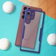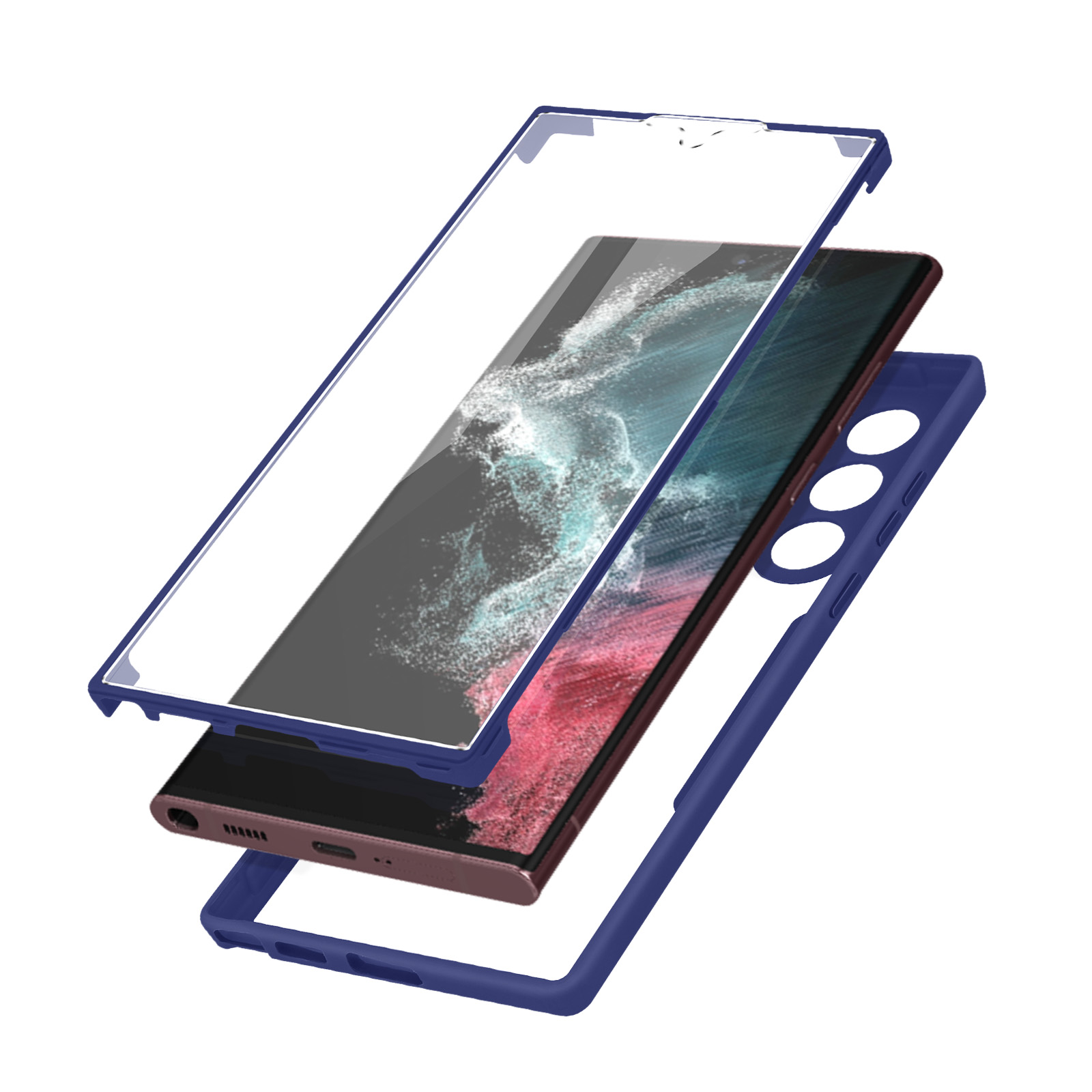 Celoten ovitek z Samsung Galaxy S22 Ultra. Sestavljen iz robustnega hrbtnega dela iz pleksi stekla in sprednjega dela iz polimera. Ojacani vogali. Dostopne funkcije in lastnosti zaslona v celoti ohranjene. Preoblikovani stranski gumbi.