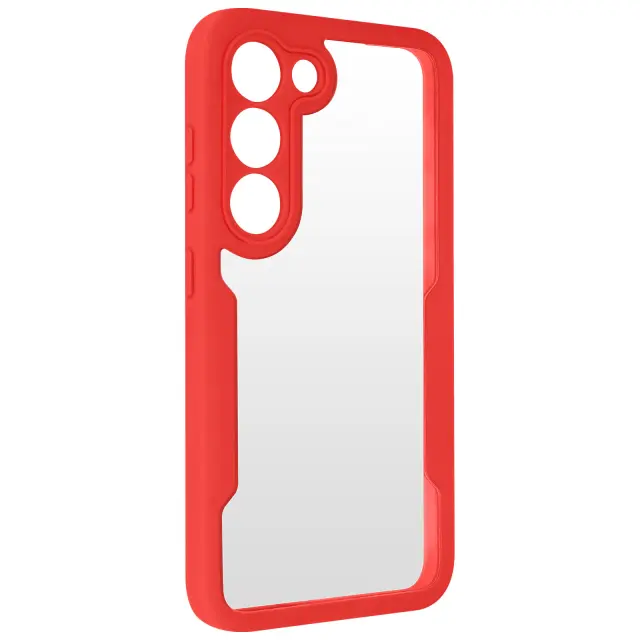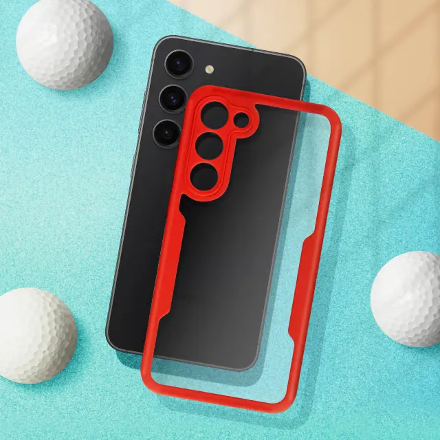 Ovitek Samsung S23, zadnji del iz pleksiglasa z Rdec obrobo
