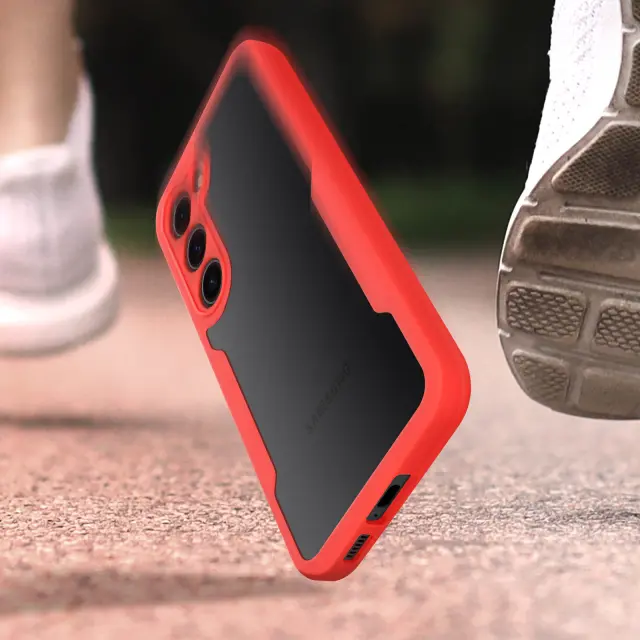 Celoten ovitek z Samsung S23. Sestavljen iz robustnega hrbtnega dela iz pleksi stekla in sprednjega dela iz polimera. Ojacani vogali. Dostopne funkcije in lastnosti zaslona v celoti ohranjene. Preoblikovani stranski gumbi.