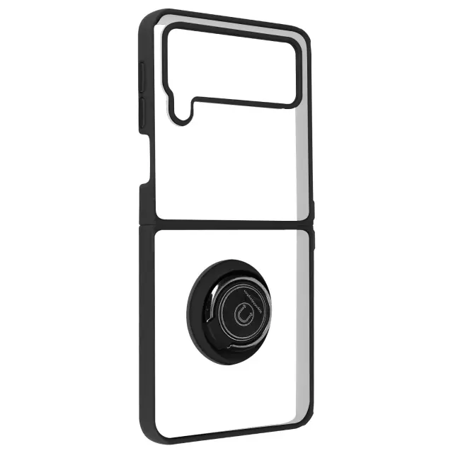 Crn ovitek za Samsung Galaxy Z Flip 4 iz dveh materialov šciti vaš telefon pred udarci in praskami. Zašcita z zadrževalnim obrocem, ki se lahko uporablja kot video nosilec in združljiv z magnetnim nosilcem (ni vkljucen). Mat zakljucek proti prstnim odtisom.
