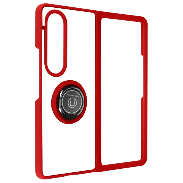 Ovitek Samsung Z Fold 4, odporen proti udarcem z držalom za obrocek in trdim zadnjim delom z ucinkom dima - rdec