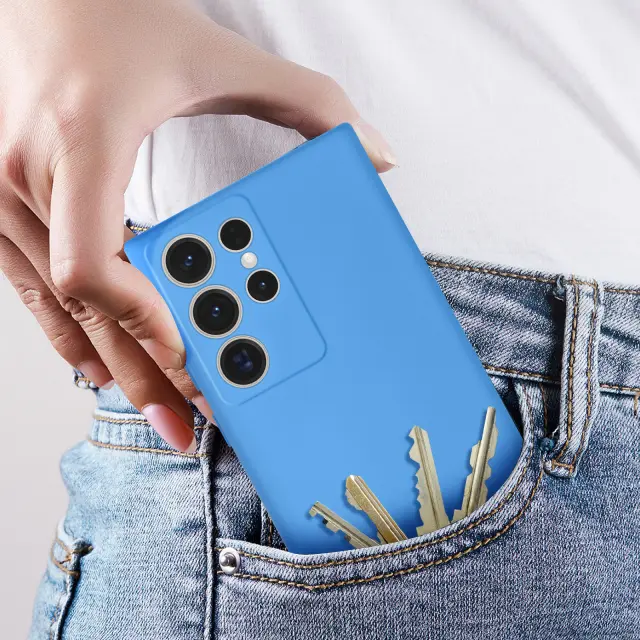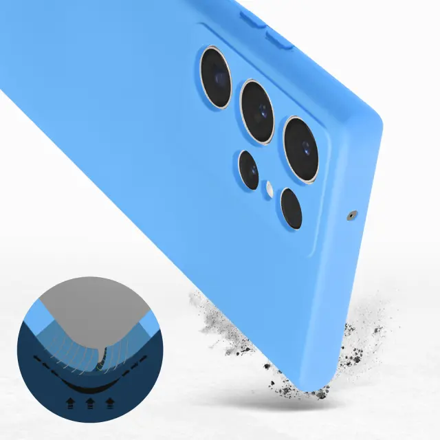 Svetlo moder ovitek za Samsung Galaxy S23 Ultra, serija Fast Cover. Ta poltrdi silikonski ovitek nudi ucinkovito zašcito pred nevarnostmi. Zahvaljujoc matiranemu zakljucku preprecuje prstne odtise. Popolnoma se ujema z obliko vašega mobilnega telefona