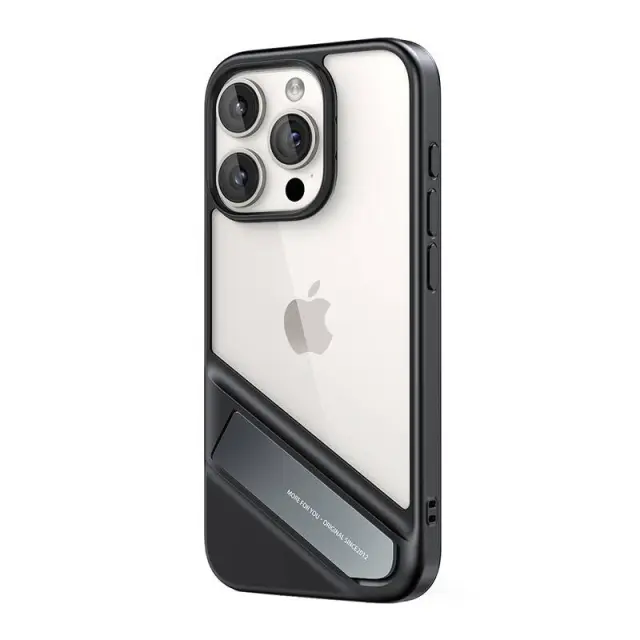 OVITEK UGREEN ZA IPHONE 15 Z INTEGRIRANIM STOJALOM ČRN