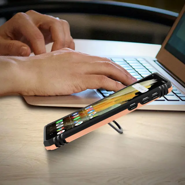 Ovitek za Samsung Galaxy S21 Ultra, odporen na udarce, ki šciti mobilnik pred udarci in praskami. Samsung Galaxy S21 Ultra zašcita z zadrževalnim obrocem. Prstan lahko služi kot podporna funkcija in naredi vaš mobilni telefon združljiv z magnetnimi nosilci.