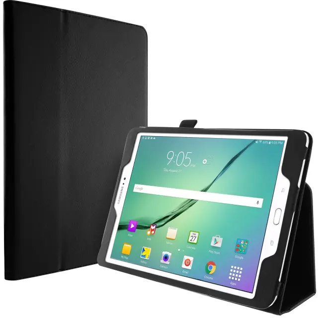 Zašcitna torbica, funkcija podpore za Samsung Galaxy Tab S2 9.7''. Ta ovitek iz umetnega usnja elegantno polepša vašo tablico. Kadar koli lahko preklopi na 2 nacina podpore in pusti vse funkcije vašega tablicnega racunalnika dostopne.