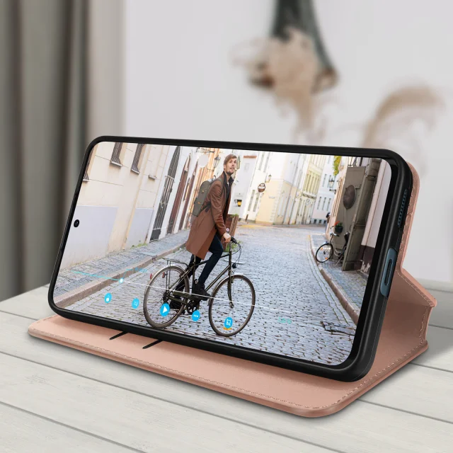 Ovitek Xiaomi 12 Lite z magnetnim preklopom, držalom za kartico in video držalom - roza