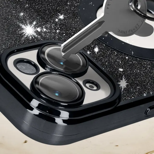 Preobrazite svoj iPhone 14 s tem crnim gel silikonskim ovitkom serije Protecam Spark. Njegova blešceca zasnova in kromiran okvir dodajata pridih sijaja. Odstranljiv list z blešcicami omogoca neskoncno prilagajanje.