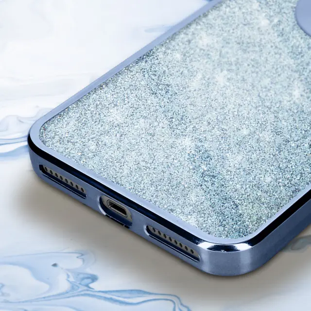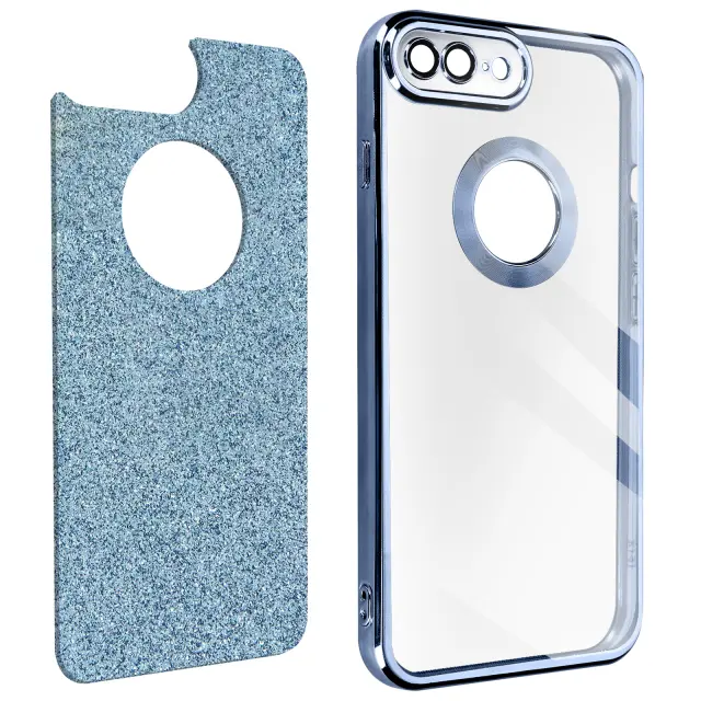 Preobrazite svoj iPhone 7 Plus in 8 Plus s tem modrim gel silikonskim ovitkom serije Protecam Spark. Njegova blešceca zasnova in kromiran okvir dodajata pridih sijaja. Odstranljiv list z blešcicami omogoca neskoncno prilagajanje.