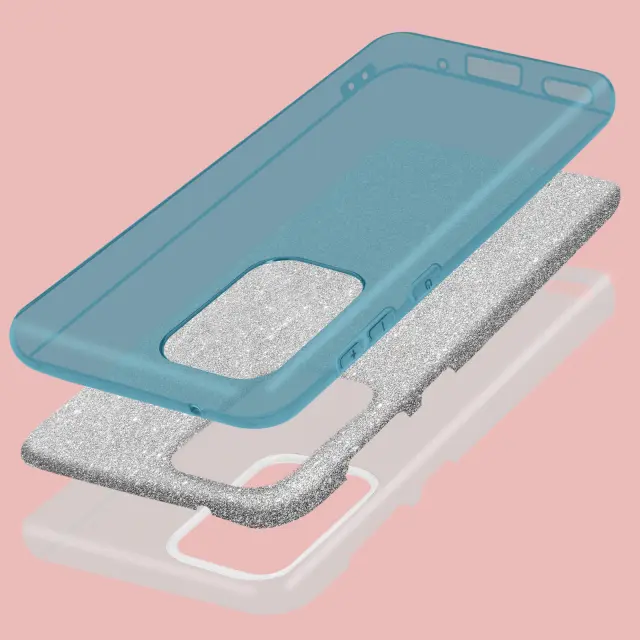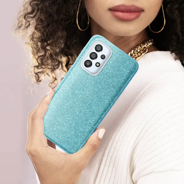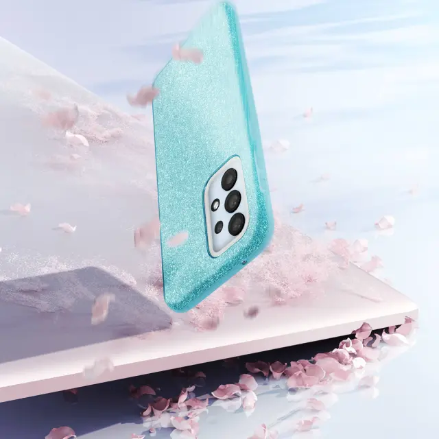 Ovitek za telefon z bleščicami, oblikovan za Samsung Galaxy A33 5G. Večslojna zasnova 3-v-1 za oblikovanje etuija, ki se ujema z vašo obleko. Izdelana iz 3 plasti: tankega polikarbonata, svetleče plasti in upogljivega silikonskega etuija. Bleščeča oblika, ki zagotavlja izjemen videz vašega pametnega telefona.