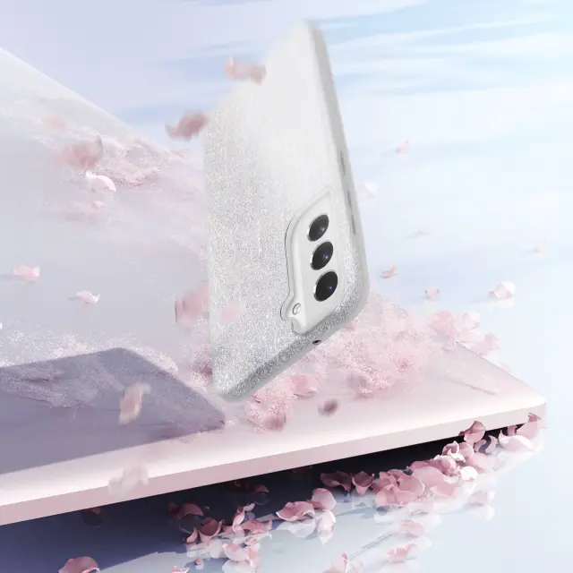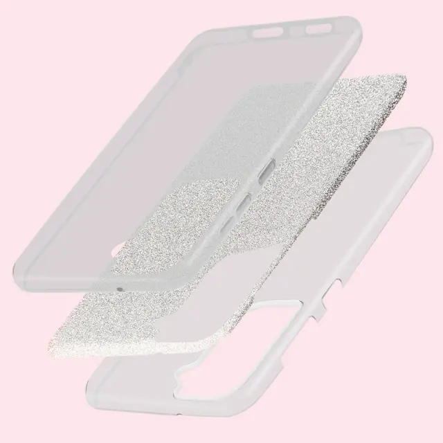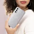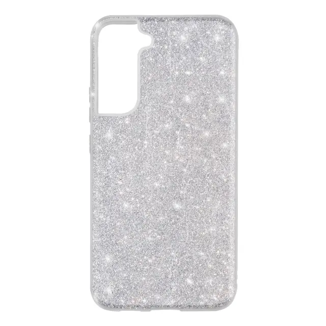 Ovitek z blešcicami za Samsung Galaxy S22 v srebrni barvi. Njegov blešcec dizajn daje vašemu pametnemu telefonu izviren videz in slog. Narejen je iz poltrdnega silikona in šciti vaš telefon pred poškodbami. Njegova tanka oblika vam omogoca boljši oprijem.