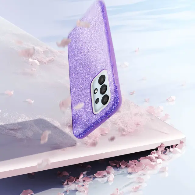 Ovitek za telefon z bleščicami, oblikovan za Samsung Galaxy A33 5G. Večslojna zasnova 3-v-1 za oblikovanje etuija, ki se ujema z vašo obleko. Izdelana iz 3 plasti: tankega polikarbonata, svetleče plasti in upogljivega silikonskega etuija. Bleščeča oblika, ki zagotavlja izjemen videz vašega pametnega telefona.