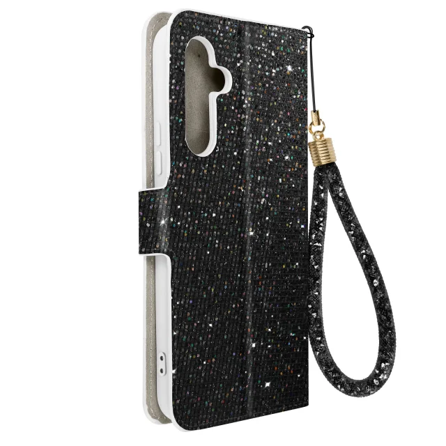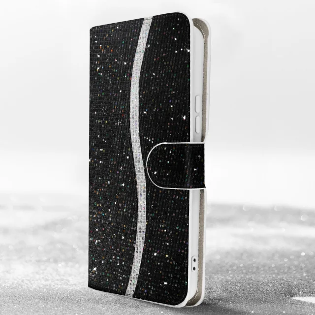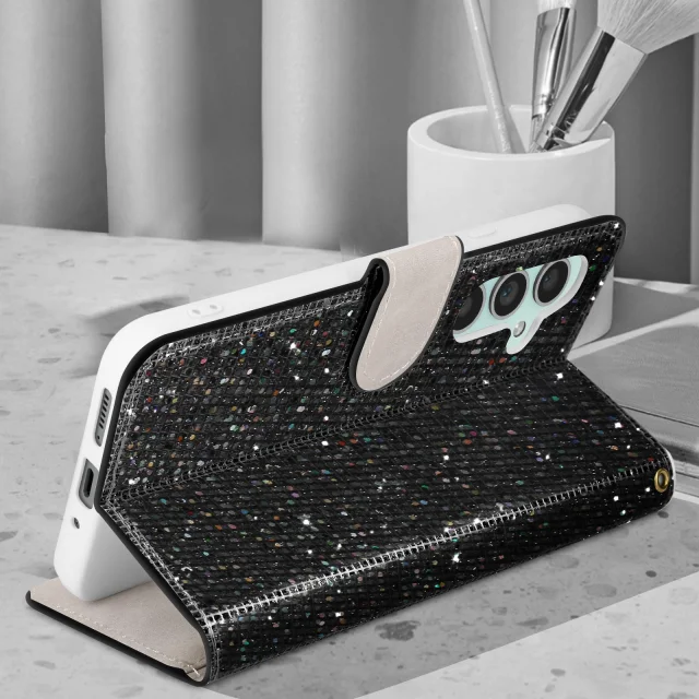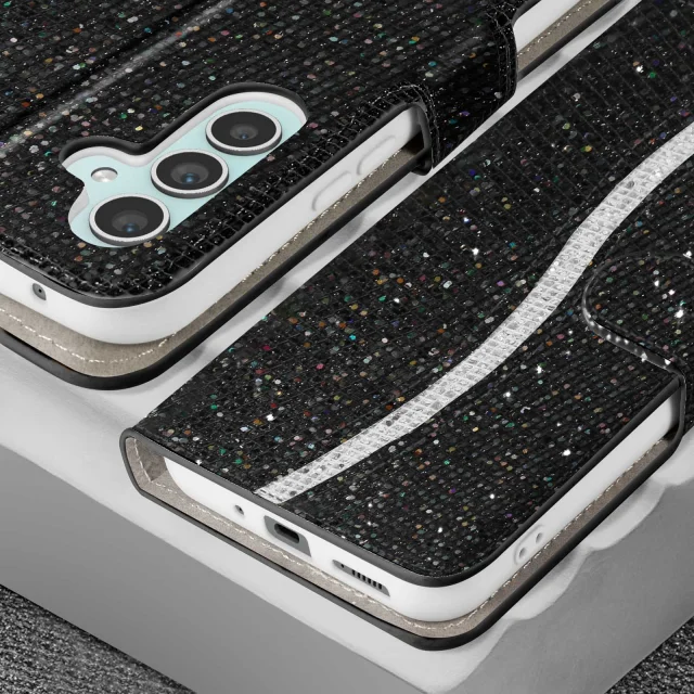 Ovitek z blešcicami za Samsung A34 5G, vgrajena denarnica, Disco Glam Edition - crn