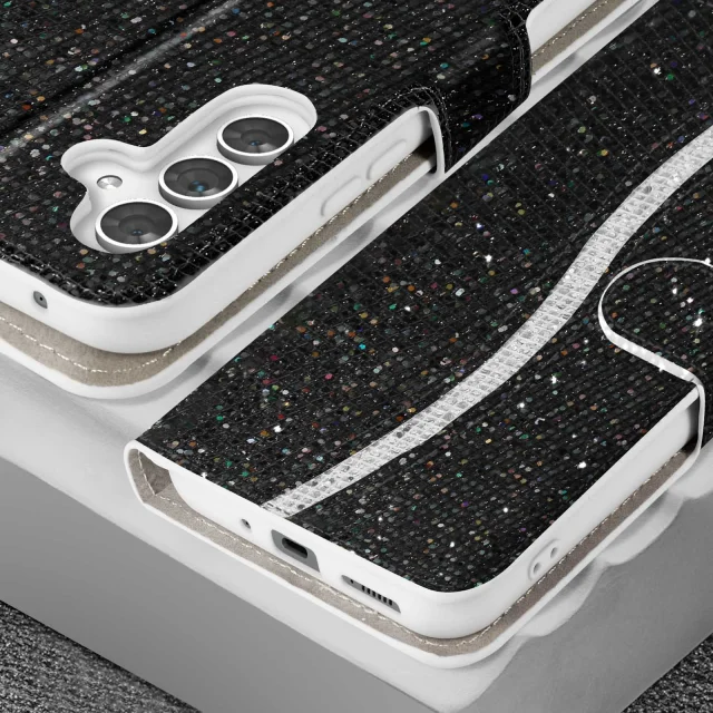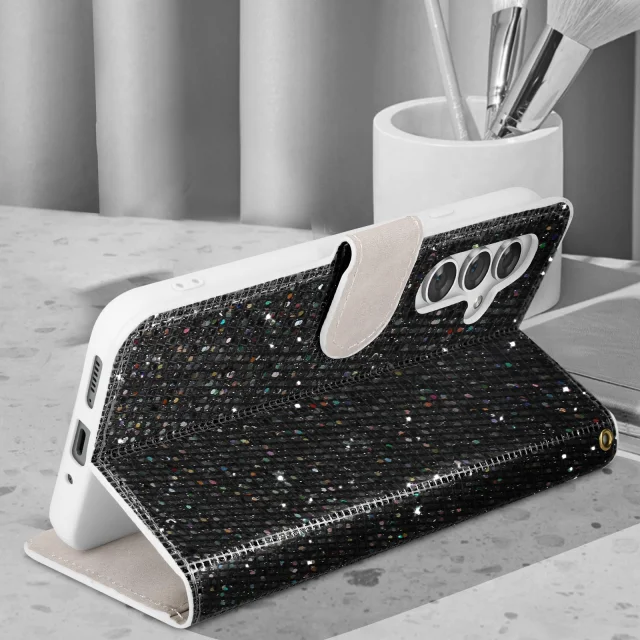 Ovitek z blešcicami za Samsung A54 5G, vgrajena denarnica, Disco Glam Edition - crn