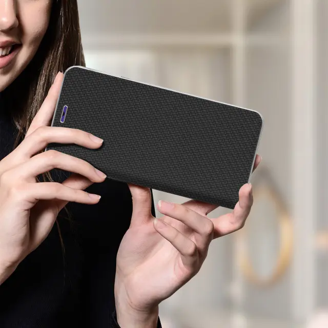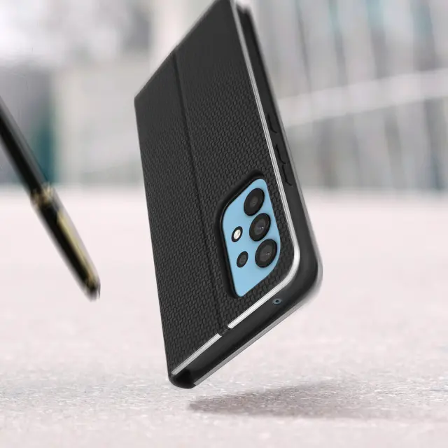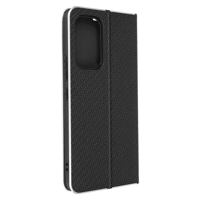 Ovitek z držalom za kartico Samsung Galaxy A53 5G, ucinek crnega ogljika s srebrnim kovinskim okvirjem, Forcell Luna Book Carbon