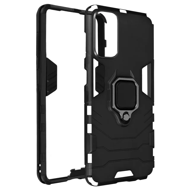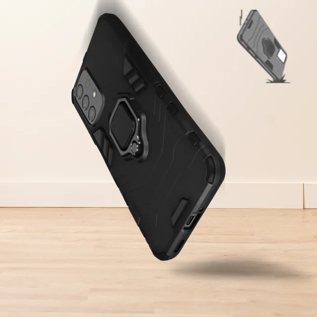 Ovitek z držalom za prstan za Samsung Galaxy A73 5G, iz dveh materialov z magnetnim sistemom - crn