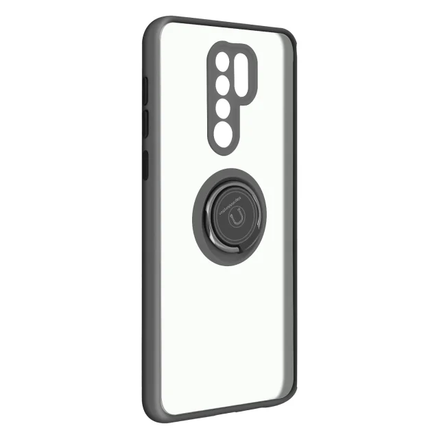 Ovitek z obrocem za Xiaomi Redmi 9 - hrbtna stran proti prstnim odtisom, združljiva z magnetnim stojalom - crna